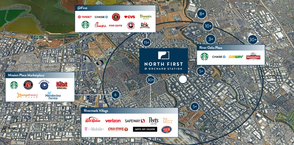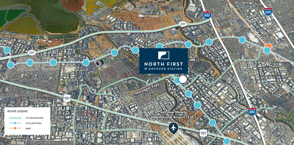 Nestled in the heart of Silicon Valley’s “Golden Triangle,” North First @ Orchard Station is a thriving business park that has called San Jose home since its development in 1981. Spanning 16.71 acres, this complex boasts six one-story R&D buildings, offering a total of 251,450 rentable square feet of prime commercial space with 823 parking stalls.